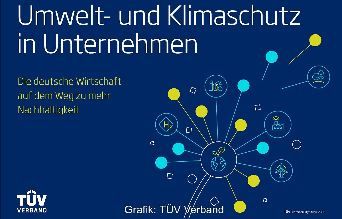 Eine repräsentative Ipsos-Umfrage im Auftrag des TÜV-Verbands hat ergeben, dass jedes dritte Unternehmen Maßnahmen für mehr Nachhaltigkeit anstoßen will und fast jedes vierte die Nutzung erneuerbarer Energien verstärken will.