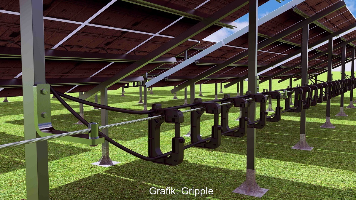 Gripple, ein Hersteller von Windverband-, Verankerungs- und Kabelmanagementlösungen für Photovoltaik-Anlagen, stellt auf der Intersolar Europa 2023 einen neuen Mini-Kabelträger vor, der speziell für die Befestigung von 6-mm-Solarkabeln entwickelt wurde.