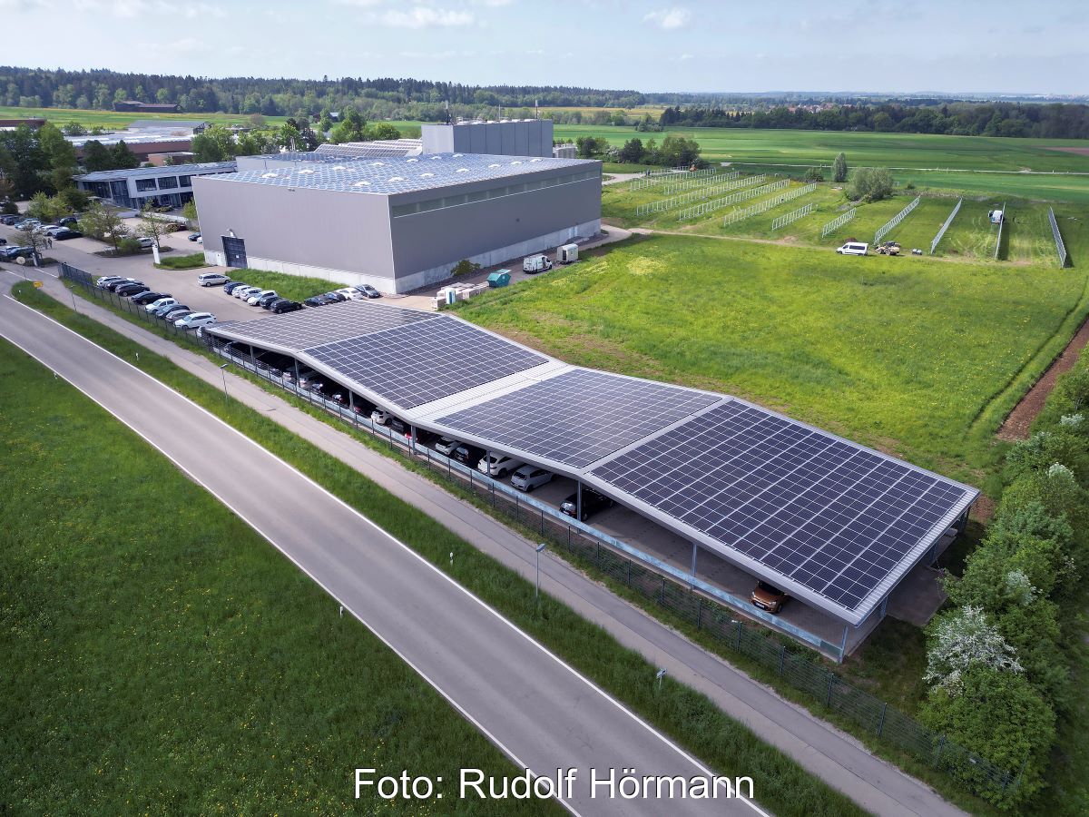 Rudolf Hörmann hat für einen Gewerbekunden sowohl eine Parkplatzüberdachung aus Photovoltaikmodulen realisiert als auch eine vertikale bifaziale PV-Anlage auf dem Firmengelände. Kunde sind die Gebr. Schwarz aus Rottweil.