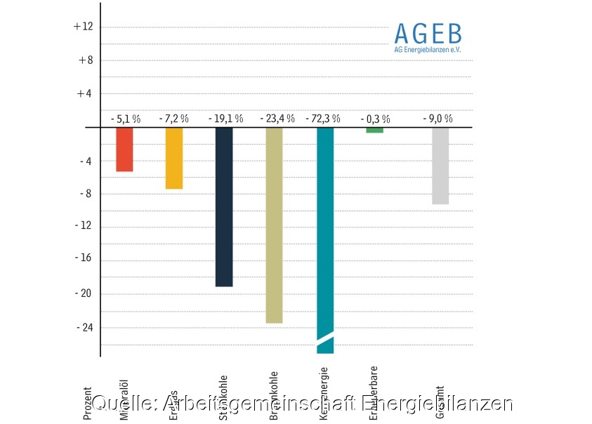 AG Energiebilanzen: Energieverbrauch fällt 2023 um 8 Prozent: