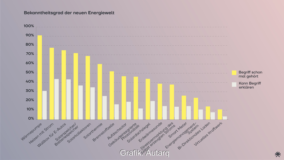 Der Solardach-Anbieter Autarq hat gut tausend Eigenheim-Besitzer:innen nach Schlüsselbegriffen der Energiewende gefragt. Wärmepumpen waren demnach fast allen ein Begriff – virtuelle Kraftwerke hingegen fast unbekannt.