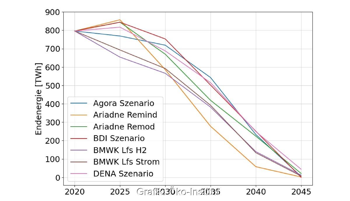 Schon in den nächsten zehn Jahren muss der Erdgasverbrauch in Deutschland je nach Szenario um 28 bis 63 Prozent sinken. Das Öko-Institut hat im Auftrag von Gaswende große Klimaneutralitätsstudien verglichen.