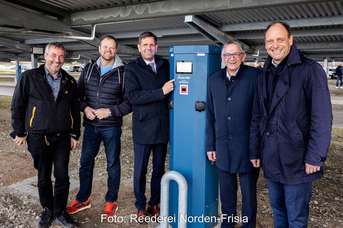 Die AG Reederei Norden-Frisia hat am Gründonnerstag in Norddeich 264 Ladepunkte für Elektro-Autos eröffnet, die mit Solarstrom versorgt werden. Der Strom kommt vom Carport-Bereich des Stellplatzes, wo die 600 Einstellplätze flächendeckend mit PV-Modulen bestückt sind.