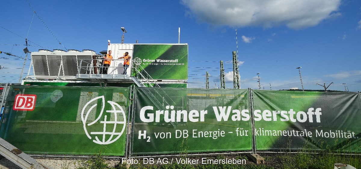 Im Innovationshub in Tübingen koppelt die Deutsche Bahn bundesweit erstmals ihre Oberleitung mit einer Wasserstofferzeugungsanlage und einem Batteriespeicher.