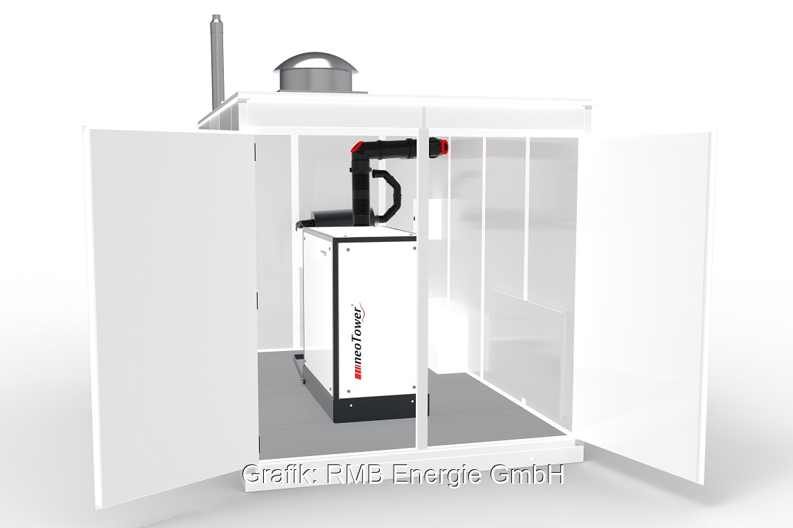 Der Blockheizkraftwerk-Anbieter RMB Energie hat einen Energiecontainer mit BHKW-Technik und einem Stromspeicher herausgebracht. Zudem kann man einen Spitzenlastkessel, eine Wärmepumpe, einen Pufferspeicher oder eine Wallbox darin unterbringen.