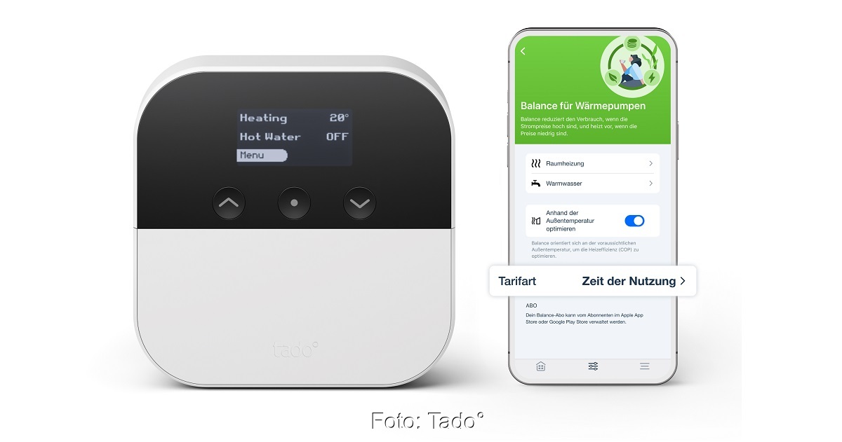 Thermondo Smart ist ein neues Energiemanagementsystem für Wärmepumpen, mit dem Nutzer:innen PV-Anlagen, Speicher, Batterien, Wallboxen, Elektrofahrzeuge, Smart Plugs oder smarte Haushaltsgeräte anbinden können. Balance von Tado° nutzt Wettervorhersagen, um den Wärmepumpenbetrieb zu optimieren.
