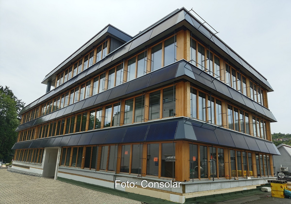 Das Büro Külby Architekten und das Solarunternehmen Consolar und haben ein Bürogebäude in Stetten verwirklicht. Es ist das erste Bürogebäude mit integrierten Solink PVT-Wärmepumpenkollektoren in der Fensterbrüstung.