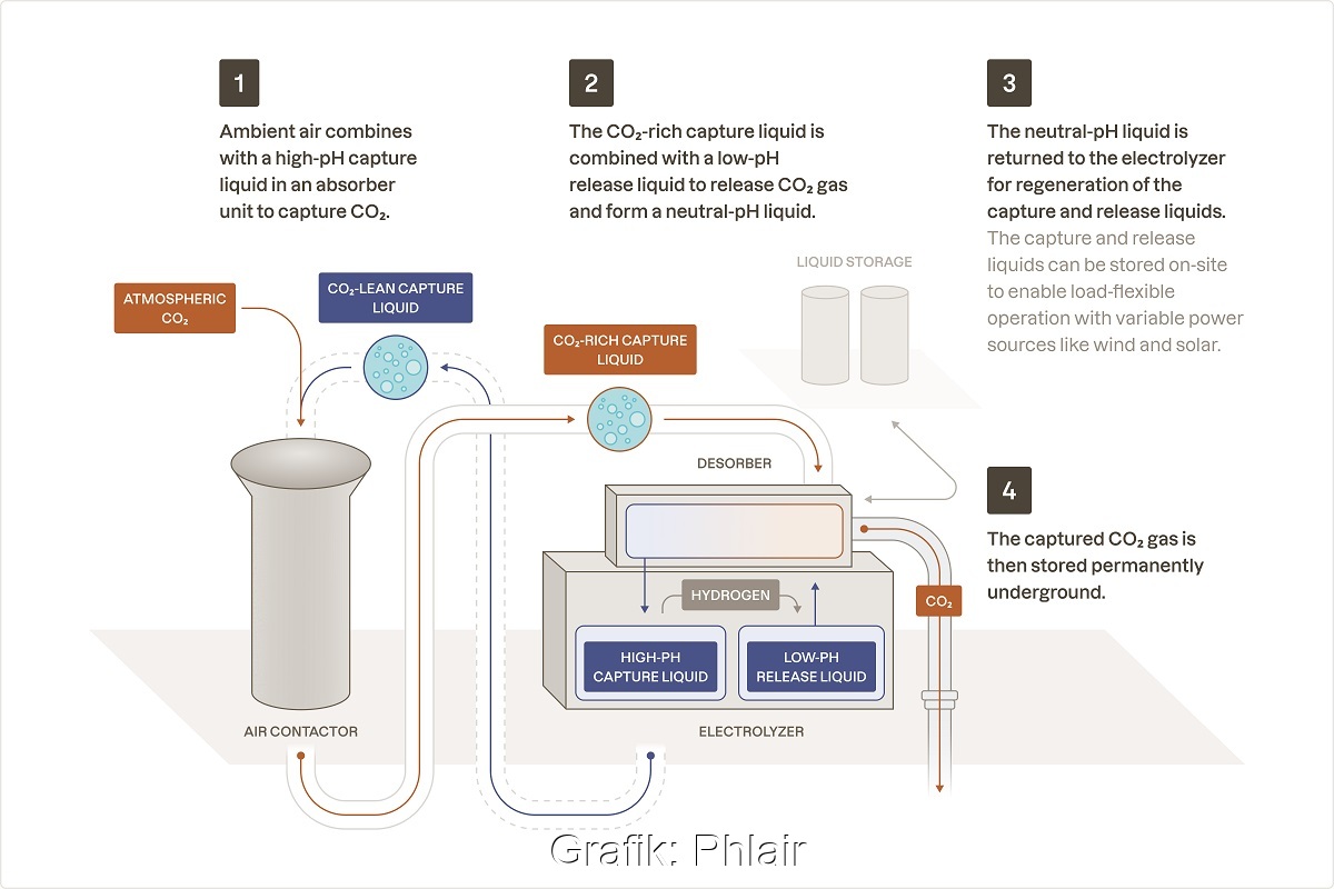Das deutsche Unternehmen Phlair erhält 30,6 Millionen US-Dollar für die Beseitigung von 47.000 Tonnen CO₂ aus der Atmosphäre in Kanada. Das Direct-Air-Capture-Verfahren des Unternehmens arbeitet mit einer eigenen Photovoltaik-Anlage.