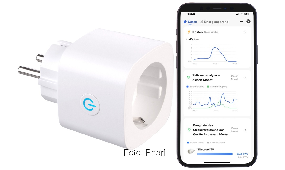 Eine neue WLAN-Steckdose kann den Ertrag eines Balkonkraftwerks bestimmen. Über eine App kann man auch Zeitpläne einrichten, um Verbraucher wie die Waschmaschine gezielt anzuschalten.