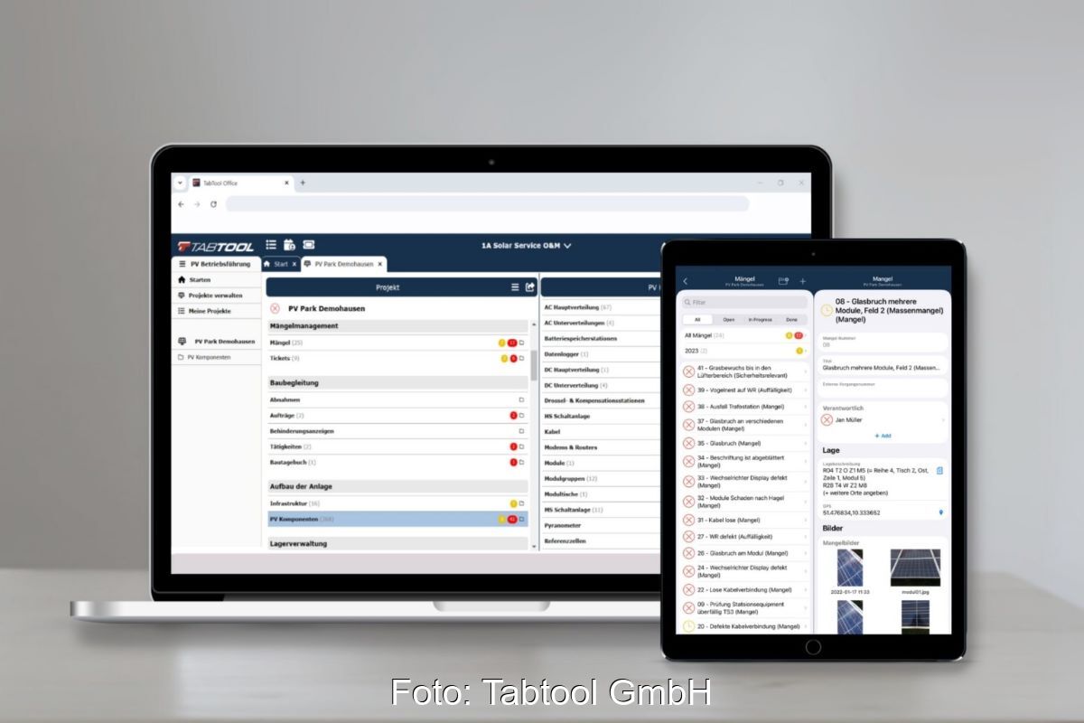 Tabtool bietet Software für Bau von PV-Großanlagen: